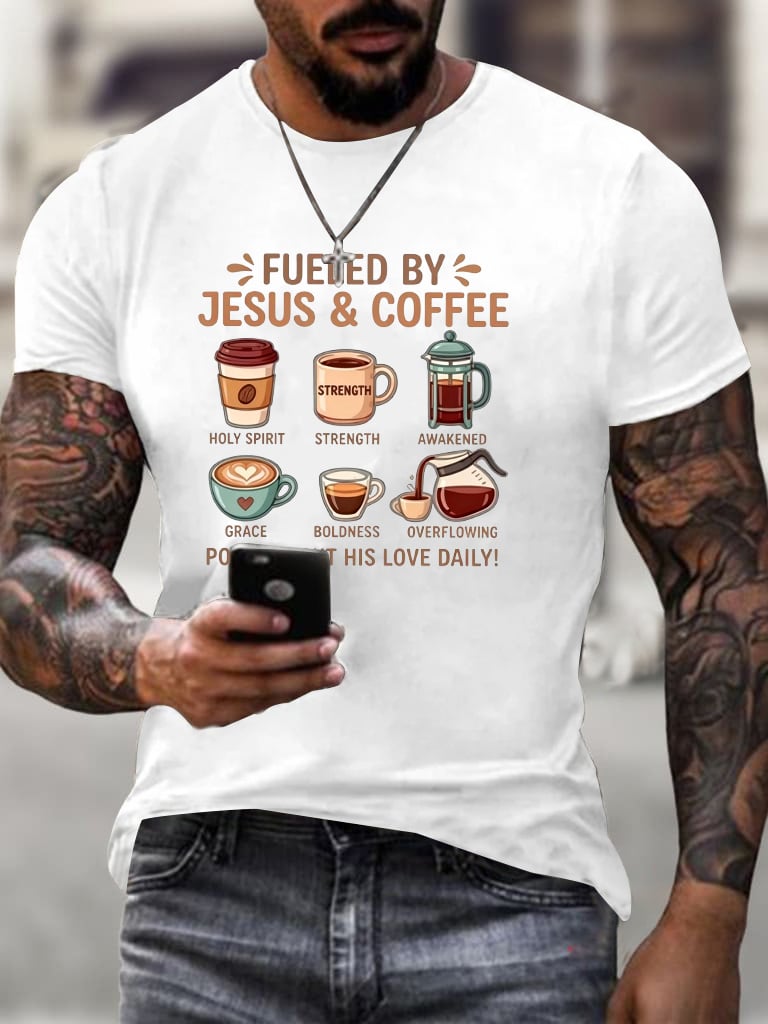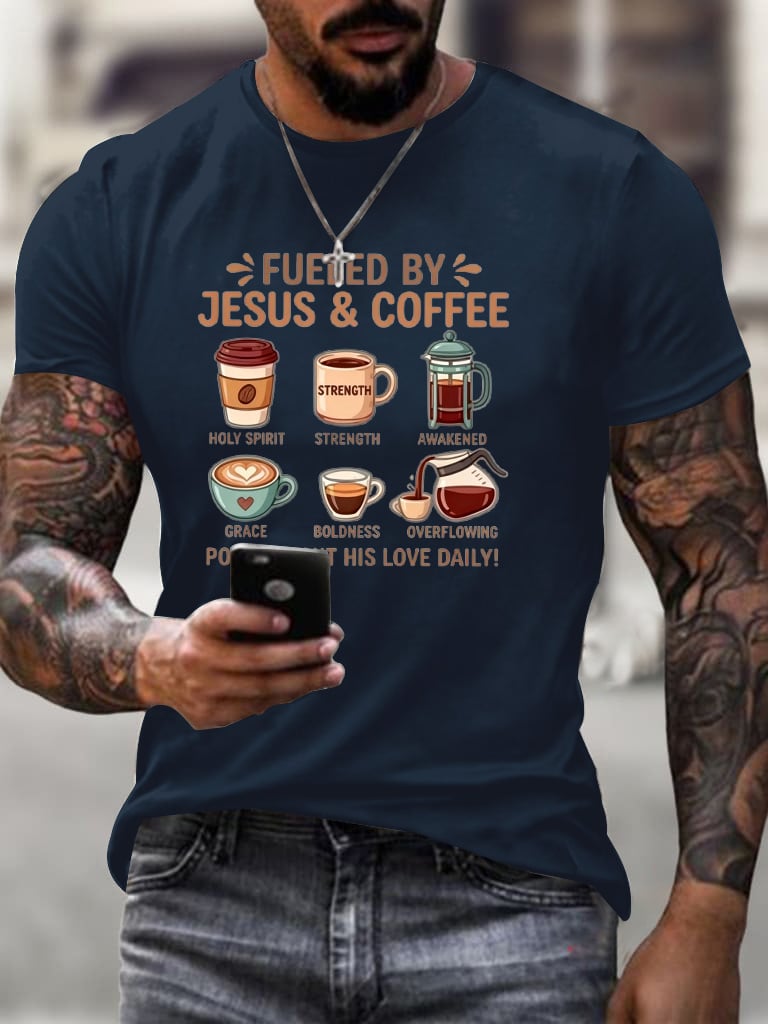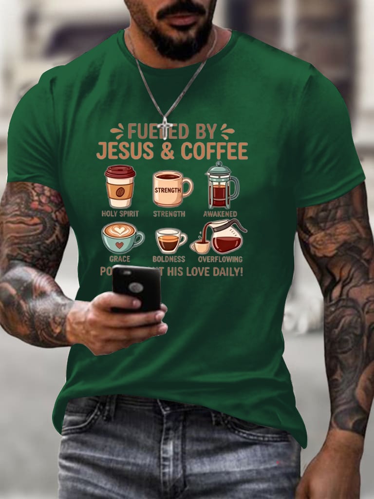Men's Fueled By Jesus And Coffee Christian T-Shirt