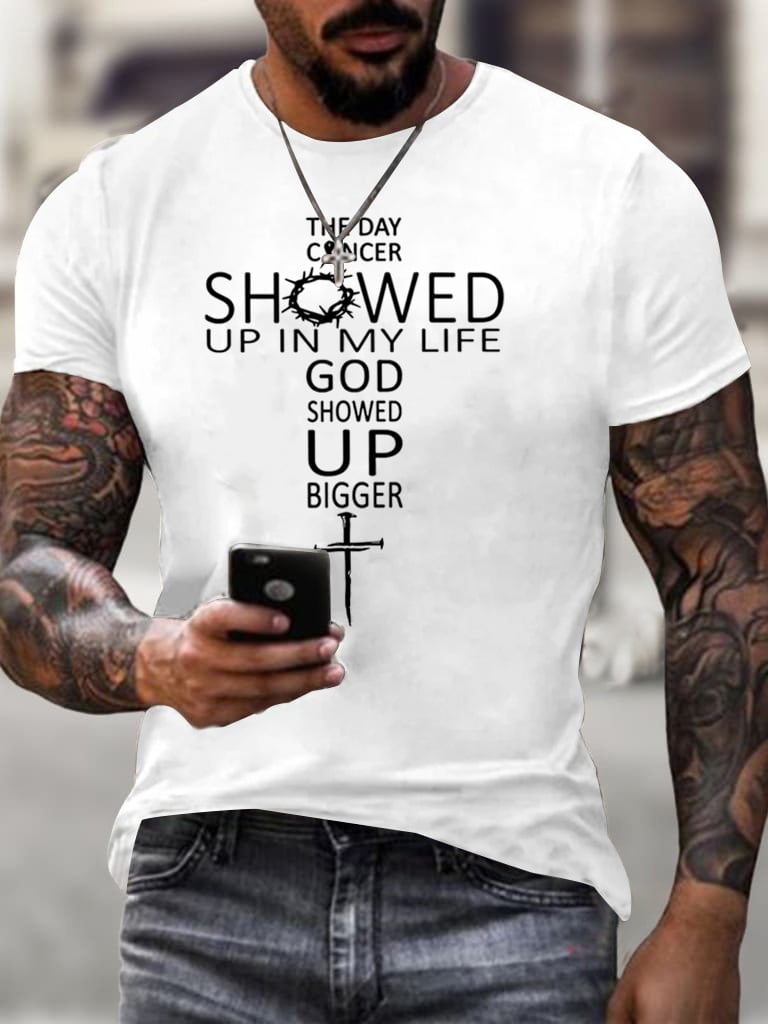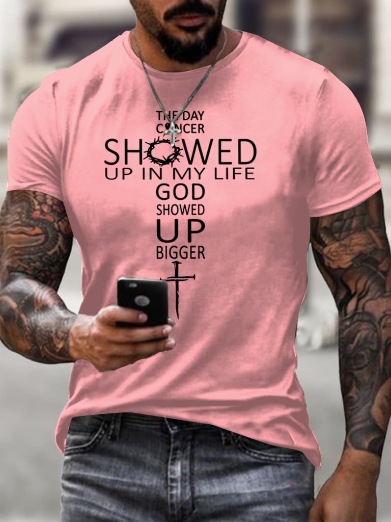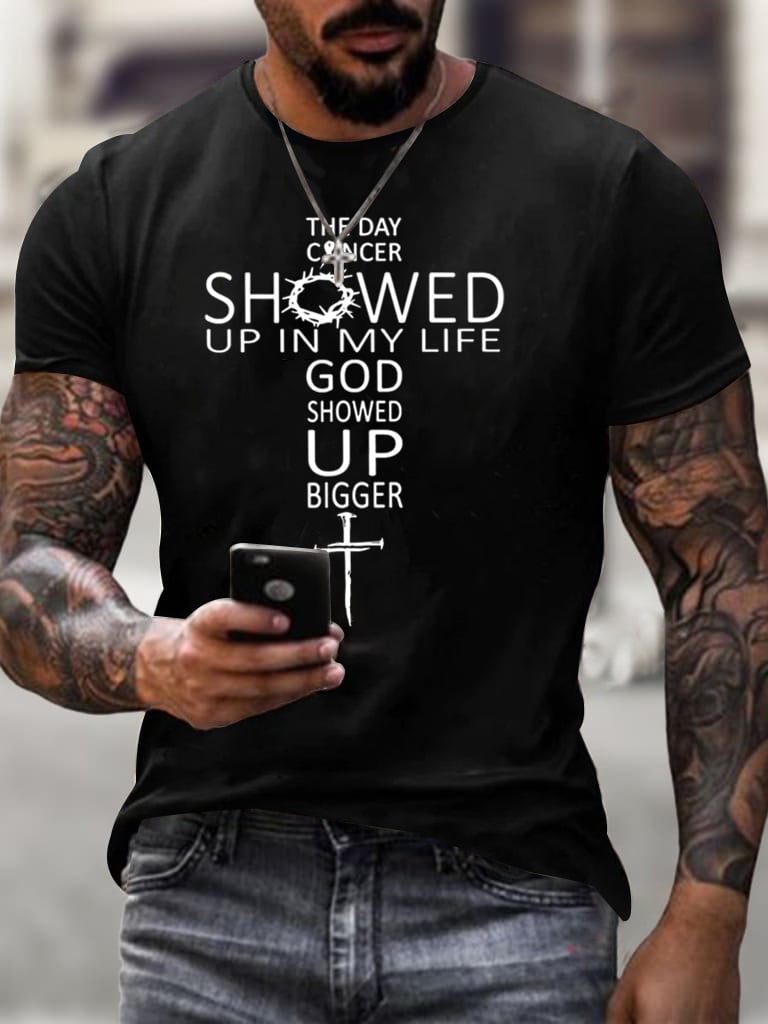 Men's The Day Cancer Showed Up In My Life God Showed Up Bigger Print T-Shirt